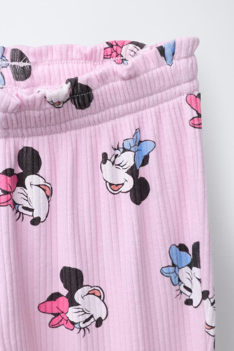 Two-piece pyjamas. Round neck, long sleeve T-shirt. Bell bottom trousers with an elasticated waistband. MINNIE MOUSE © DISNEY print.
