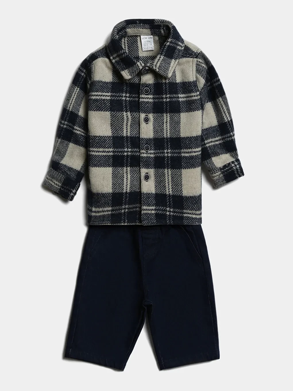 LCW baby Long Sleeve Plaid Baby Boys' Shirt And Trousers 2 Pack Set