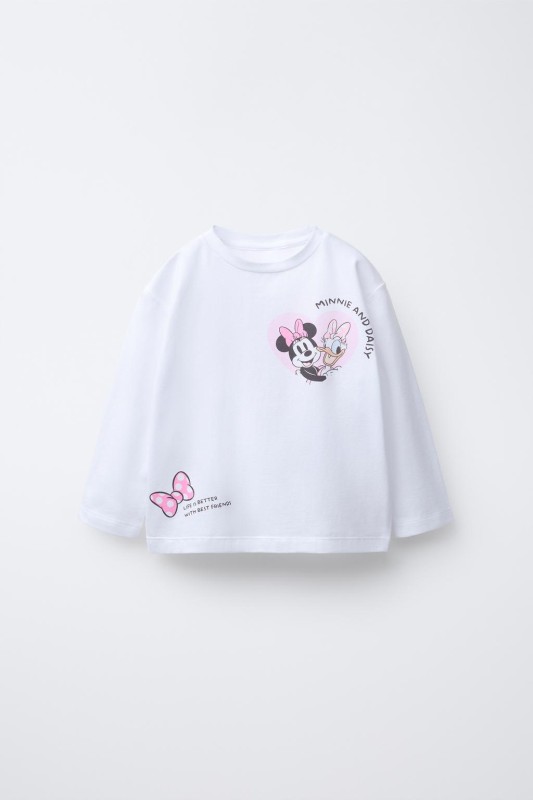 Two-piece pyjamas. Round neck, long sleeve T-shirt. Bell bottom trousers with an elasticated waistband. MINNIE MOUSE © DISNEY print.