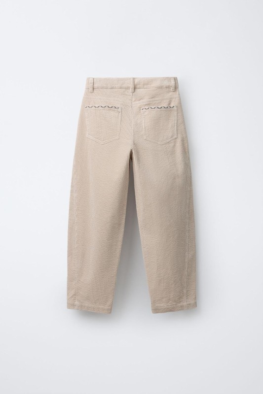 BARREL CORDUROY TROUSERS WITH EMBROIDERED DETAIL