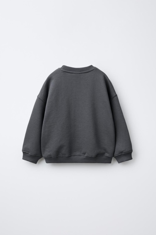 Long sleeve sweatshirt with a round neck. Featuring ribbed trims and a dinosaur print on the front.