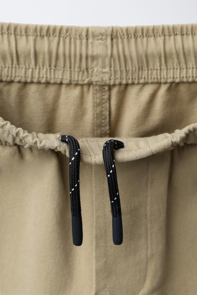Straight-leg trousers with an elasticated waistband and concealed adjustable drawstrings at the front. Featuring front pockets and rear patch pockets. Label appliqué on the leg.